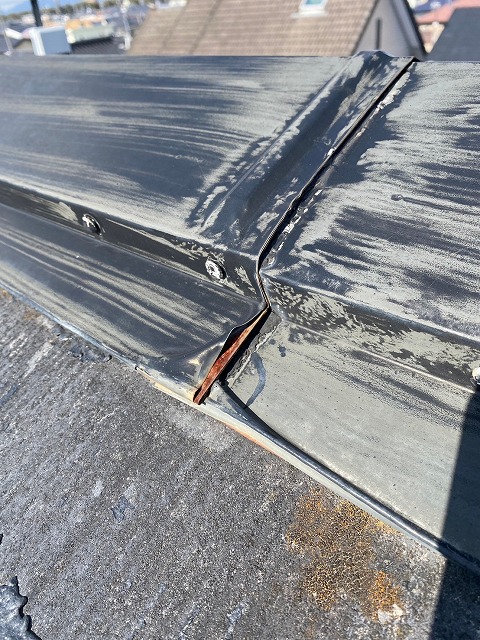 2025/02/12 田原市で訪問営業による屋根の指摘を受けたお客さまから相見積もりのご相談、大手ハウスメーカーオリジナルの塩ビシート張り板金に不具合を発見