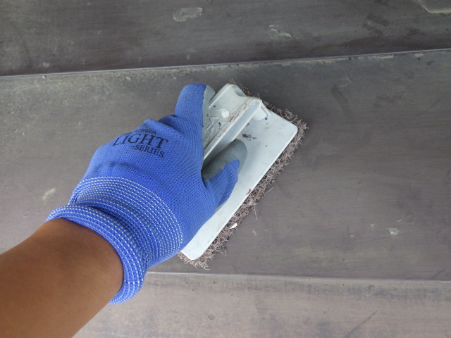 鹿沼市の板金屋根葺き替え工事で玄関屋根を塗装しました。 玄関屋根板金部のケレン中です。 大屋根下屋根とも瓦棒葺きでしたが玄関屋根は横葺きの為、塗装工事で仕上げるご依頼です。 板金部の汚れや浮いた塗膜など、塗装する障害になる物をケレンして落としていきます。 ...続きを読む2025/01/28 スレート屋根の劣化で雨樋に破片が詰まる危険性もあり⚠春日部市にて屋根カバー工事!
