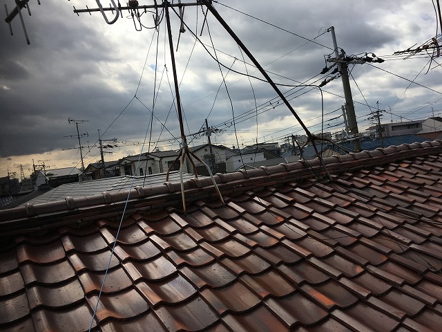 岸和田市にお住いのN様邸の屋根葺き替え工事のご紹介です。地震が発生した時の揺れを少しでも軽減するために土葺きの屋根を軽い屋根材に葺き替えるこ ...続きを読む2026/01/30 泉北郡忠岡町/台風で屋根のアンテナが倒れ車庫の板金屋根も飛散
