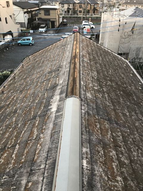 埼玉県幸手市中のお客様の大屋根コロニアルの状態です。屋根塗装は約4年前に施工をしたみたいですが、色あせや耐久性がなくなっている状態でした。施工してから4年位でこの状態は早いと思います。 大屋根の棟板金の状態です。写真でもはっき ...続きを読む2024/08/23 幸手市お客様宅でコロニアル屋根にタスペーサー取付工事行いました!