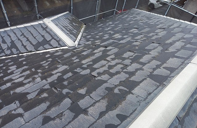 雨漏り箇所の判断が難しいときに、散水試験を行いますがその際に活躍するのがサーモグラフィーです。目視では確認できない内部の温度変化を読み取るため、判断材料の一つとしてとても役立っています。 ...続きを読む2025/11/12 いわき市で通常のスレート屋根よりも早く劣化してしまうパミールの屋根カバー工事をご提案