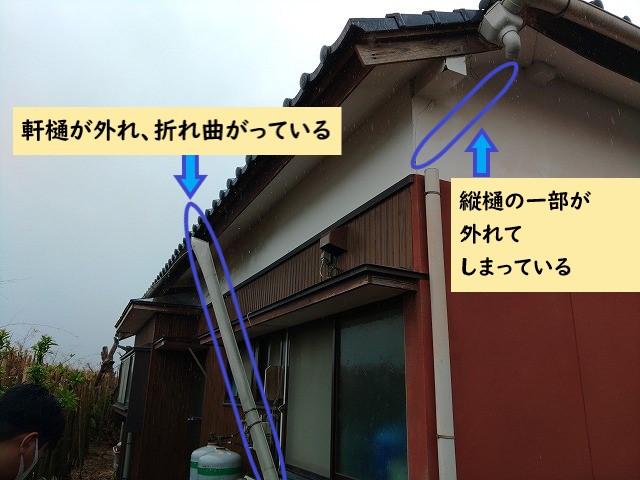 雨樋・屋根のそれぞれに不具合がある状態でした。 こんにちは。『街の屋根やさんいわき店』です。今回は、お電話にて車庫の屋根と雨樋の修理のご依頼を頂いたお客様のご自宅の現地調査についてご紹介させていただきます。梅雨時期に入りますと、毎年のように屋根や雨樋に関する修理依頼のお問 ...続きを読む2025/11/12 いわき市平窪で強風による雨樋の不具合。軒樋が外れてしまった住宅の修理を行いました。