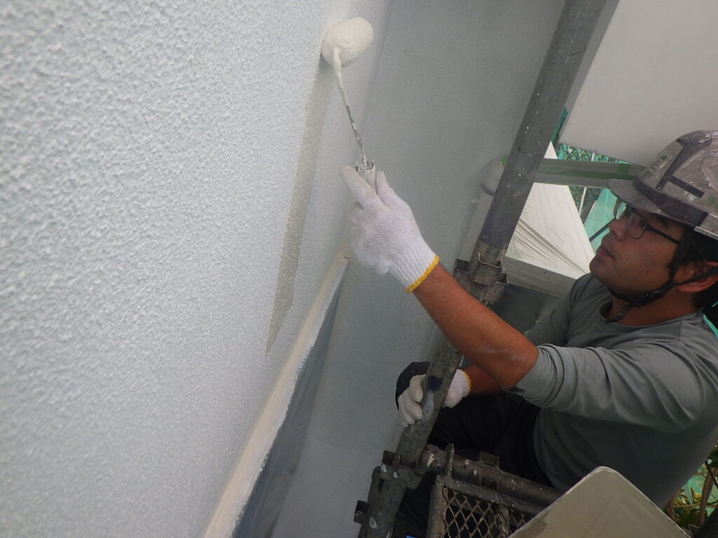 宇都宮市でリシン壁の下塗り塗装が完了しました。 軒天の二回目塗装中です。一回目塗装が塗り込まれているので、二回目塗装も同じように入隅等のローラーでは塗料が行き届かない細かい箇所を先に刷毛で塗装してから、ローラー ...続きを読む2024/06/10 宇都宮市でダイナミックトップで外壁上塗り塗装に入りました。