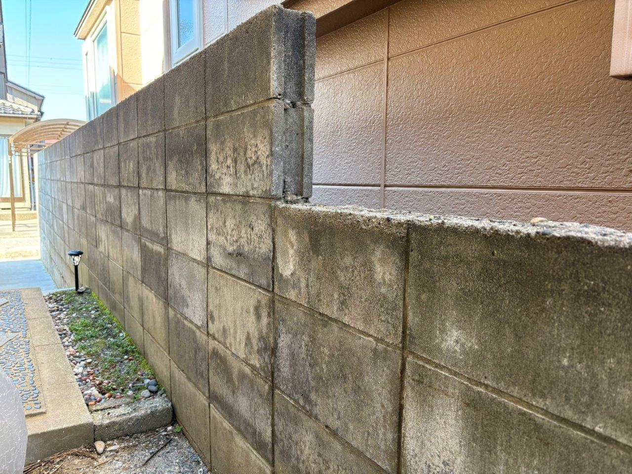 室内に雨染みが発生していました こんにちは!街の屋根やさん山梨店です!今回は、緊急の雨漏りSOSが入りましたので、調査してきた様子をご紹介し ...続きを読む2024/06/9 新潟市西区にて地震の影響でブロック塀が傾いたので解体したいとご相談を頂きました