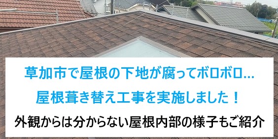 ご近隣様にご挨拶に伺い、足場設置後、高圧洗浄を行ないます こんにちは!街の屋根やさん山梨店です!今回は、北杜市でガルバリウム鋼板屋根を高圧洗 ...続きを読む2024/06/5 草加市で屋根の下地が腐ってボロボロ…屋根葺き替え工事を実施!外観からは分からない内部の様子も紹介します!