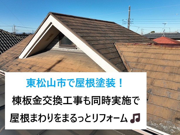 こんにちは。街の屋根やさんいわき店のホームページをご覧いただき誠にありがとうございます。店長の遠藤です。今日はスレート屋根の棟板金が経年劣化で外れてしまった事例についてご紹介していきたいと思います。棟板金は、金属の鋼板で出来ているため、とても軽い素材です。そのため、経年劣化で棟板金の釘がサビて浮いてきていたり ...続きを読む2024/06/5 東松山市で屋根塗装!棟板金交換工事も同時実施で、屋根まわりをまるっとリフォーム🎵