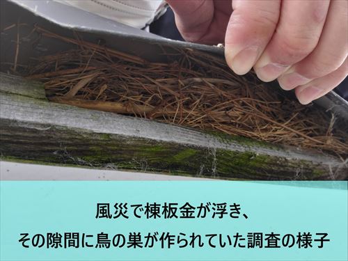 こんにちは、街の屋根やさん堺店です!住宅の屋根は年数が経つと少しずつ劣化が起きてくるため、雨漏りや住宅劣化を防ぐ為に屋根工事が必要です。しかし、屋根工事はそう頻繁に行うものではないので、どこに屋根工事を頼んでいいのか迷う方も多いのではないでしょうか?今回は堺市南区で屋根工事を行ったお客様の口コミを3つご紹介い ...続きを読む2024/05/28 堺市北区で風災により棟板金が浮きその隙間へ鳥の巣が作られていた為、棟板金補修を行いました。