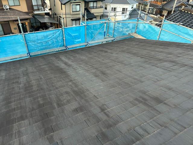 3階建の屋根にハシゴを設置します。写真には写っておりませんが、3連に伸びる9mまで届くハシゴを使用しますが、3階建てはそれでも届かないことが多いので、車の荷台より設置しております。そして、ベランダ上には雨避けの塩ビ波板の屋根などが取付されていることが多いので、その上を踏み ...続きを読む2024/05/28 光市で屋根塗装・外壁塗装、黒ずみが発生したスレート屋根を塗装