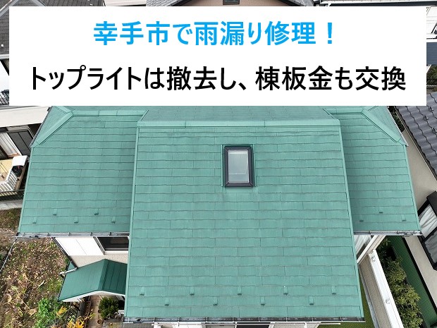 トップライト(天窓)撤去で雨漏り解消へ!棟板金交換も同時に行いました 幸手市にお住まいの皆さま、こんにちは(*'▽')街の屋根やさん春日部店です! 今回のブログは幸手市のお客さまです。「飛び込み業者に棟板金が浮いていると言われることが立て続けにあったため ...続きを読む2024/05/16 堺市北区の店舗にて雨漏れ被害を受けた床の張り替えとトイレリフォーム 雨漏れに伴う内装リフォームも街の屋根やさん堺店にお任せください!