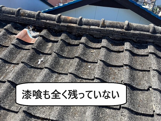 こんにちは、街の屋根屋さん堺店です。本日は池田市にて1階軒先から雨漏りが起こっている住宅の現地調査の様子をご紹介します。以前別の業者に雨漏り調査を依頼したそうですが、原因を特定できなかったため雨漏りを解消させる事ができずに不安に思われていました。雨漏りに関する調査は街の屋根屋さん堺店にお任せ下さい。% ...続きを読む2024/05/16 四国中央市の蔵の日本瓦の葺き替え現場。屋根裏部屋の養生と棟へぎを実施しました。