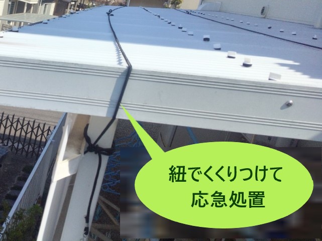 皆さんこんにちは。『街の屋根やさんいわき店』です。今回はいわき市にお住まいの方からご依頼を頂きましたのでご紹介します。依頼内容ですが「以前に強風が吹いていた時に屋根の棟板金が外れて落ちてきました。他にも何か異常があるかもしれないので一度調査をしていただきたい」とのことでした。皆さんは火災保険に ...続きを読む2024/05/2 河内長野市にて強風で物干し場屋根のプラフックが破損|耐久性の高いポリカフックへ交換して固定力をアップさせました