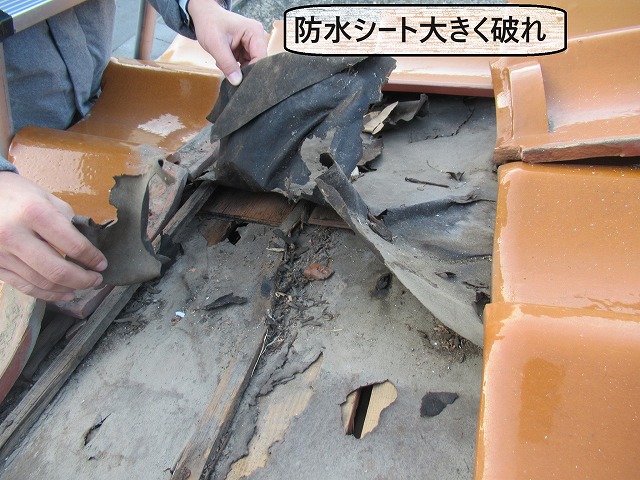 2024/05/4 甲府市で瓦の脱落・ひび割れ・漆喰の剝れが総じて、雨漏りが発生/応急防水処置を実施