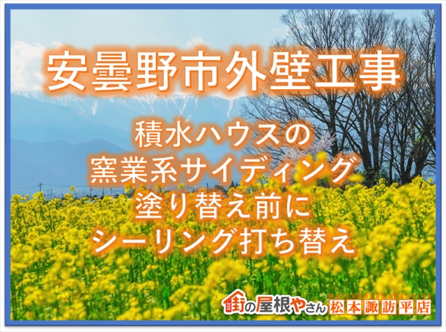 安曇野市で外壁工事を行いました。積水ハウスのお家で、セメントと繊維質を混ぜて成型した窯業系(ようぎょうけい)サイディングボードの外壁です。窯業系サイディングはそれ自体に防水性はなく、ボードの防水は表面の塗装で、ボードとボードのジョイント部分はゴム状のシーリングを打つことで防水しています。塗装も ...続きを読む2024/04/20 新潟市東区にて雨漏れ修繕工事を行いました