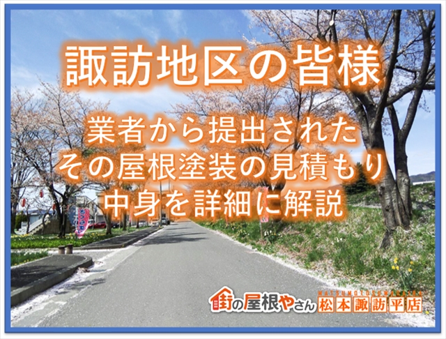 皆さんお疲れ様です!街の屋根やさん神戸西店です。今日は、加古川市にお住まいの方より「雹被害で戸建ての雨樋や波板が破損したので調査して欲しい」とご相談を頂き、調査及び火災保険申請を行った時の様子をご紹介しましょう(^^)/先日、兵庫県南部を中心に発生した雹被害でお困りの方も多いと思います。非常に多くの方よりご相 ...続きを読む2024/04/20 諏訪地区の皆様へ:業者から提出されたその屋根塗装の見積もり:中身を詳細に解説