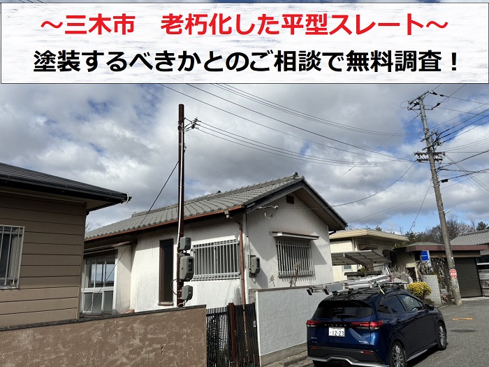 こんにちは、街の屋根やさん新居浜中央店です。今回の記事は、ハイシルバー屋根の割れた地瓦の差し替え工事です。隅棟復旧が終わり、瓦の差し替えから工事完了までのご案内します。【この現場に関する記事】本日は、3月下旬に強風が吹き、瓦が割れた際にお見積りさせていただいた四国中央市の補修工事です。四国中央市で強風により割 ...続きを読む2024/04/11 三木市 老朽化した玄関屋根の平型スレート!塗装するべきかとのご相談