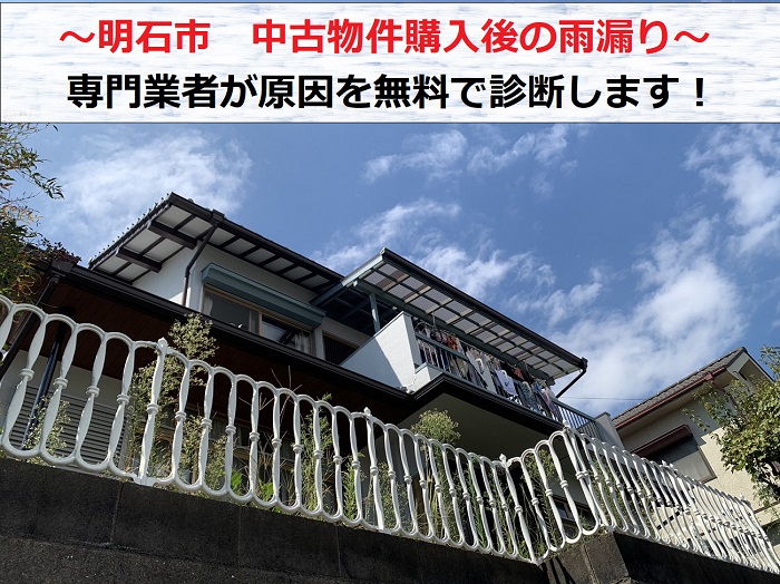 皆さんお疲れ様です!街の屋根やさん神戸西店です。今日は、宝塚市にお住まいの方より「風災の影響で瓦屋根が落下してきたので調査してほしい」とご相談を頂き、現地へ無料調査にお伺いした時の様子をご紹介しましょう(^^)/季節によりますが台風などの風災で屋根や外壁の一部が破損、落下しお困りの方から良くご相談を頂きますね ...続きを読む2024/03/28 明石市 中古物件購入後に雨漏り発覚!専門業者が原因を診断します