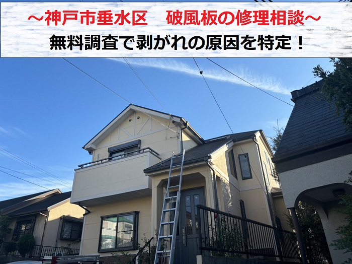 東金市日吉台へ屋根点検に伺いました。化粧スレート屋根から金属屋根へカバー工法をご検討されているとのことでした。点検結果をご報告いたします。 屋根全体に色褪せが進んでいました。特に屋根材の重なり部分(小口)の黒ずみが目立っていました。 化粧スレート屋根は、塗装(塗膜)により防水性を維持してい ...続きを読む2024/03/28 神戸市垂水区 破風板の修理相談!剥がれた原因を無料調査します