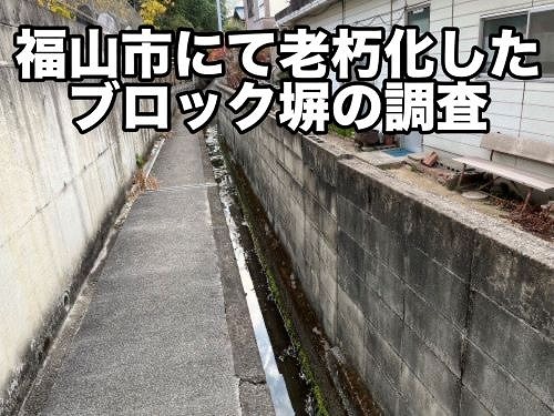こんにちは、街の屋根やさん熊本店です。本日は熊本市のリピーター様宅にて雨樋点検・雨樋清掃を行った様子をご紹介します。以前、雨樋の交換と落ち葉除けネットの取り付けを行いましたが、集水マスに落ち葉が溜まって雨水があふれている状態だった為、落ち葉を取り除いて適切に排水できるようにしておきました。今回のブログでは雨樋 ...続きを読む2024/04/2 福山市にて老朽化でひび割れたブロック塀の調査