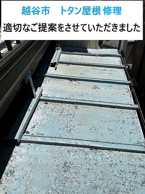 メンテナンスを検討中のお家で無料点検を実施!外壁と屋根、どちらも塗装のご提案 久喜市にお住いの皆さま、こんにちは!街の屋根やさん春日部店です(^_^)/ 今回は、久喜市にお住まいのお客様より点検・調査・お見積りのご依頼を頂きました♬ 築20年、外壁も屋根 ...続きを読む2024/03/25 越谷市でトタン屋根修理のご提案!劣化症状に合わせた修理方法をご紹介いたします!