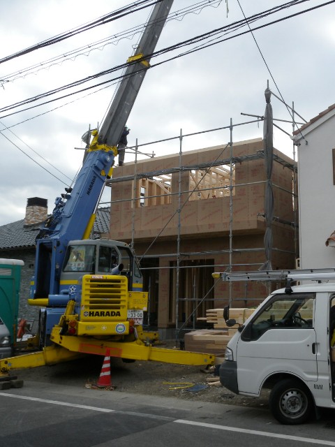 今日はサッシの取り付けや屋根の防水シート貼り。明日は天気が崩れそうですから・・・良かった♪ これで雨が降っても大丈夫 ^o^v 「写 ...続きを読む2024/03/23 焼津市本町4丁目 М様邸新築現場 クレーン車の上空は・・ (@o@);/