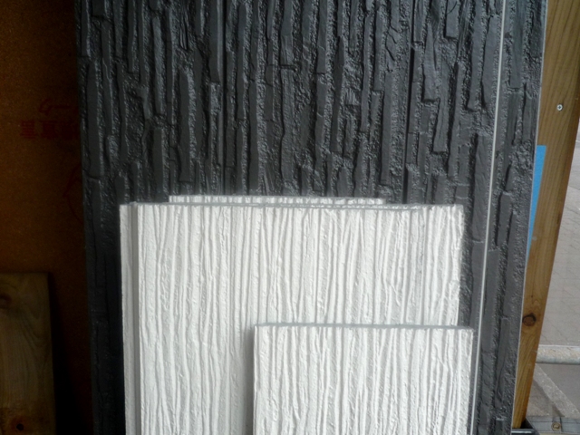 外壁材の切れ端がありましたので、アップ写真。ダークブラウンとミルキーホワイトの2色で貼りました。ブラウンの方が少しゴツゴツした岩肌調でホワイトは塗り壁の籤引調で優しい感じです。 ...続きを読む