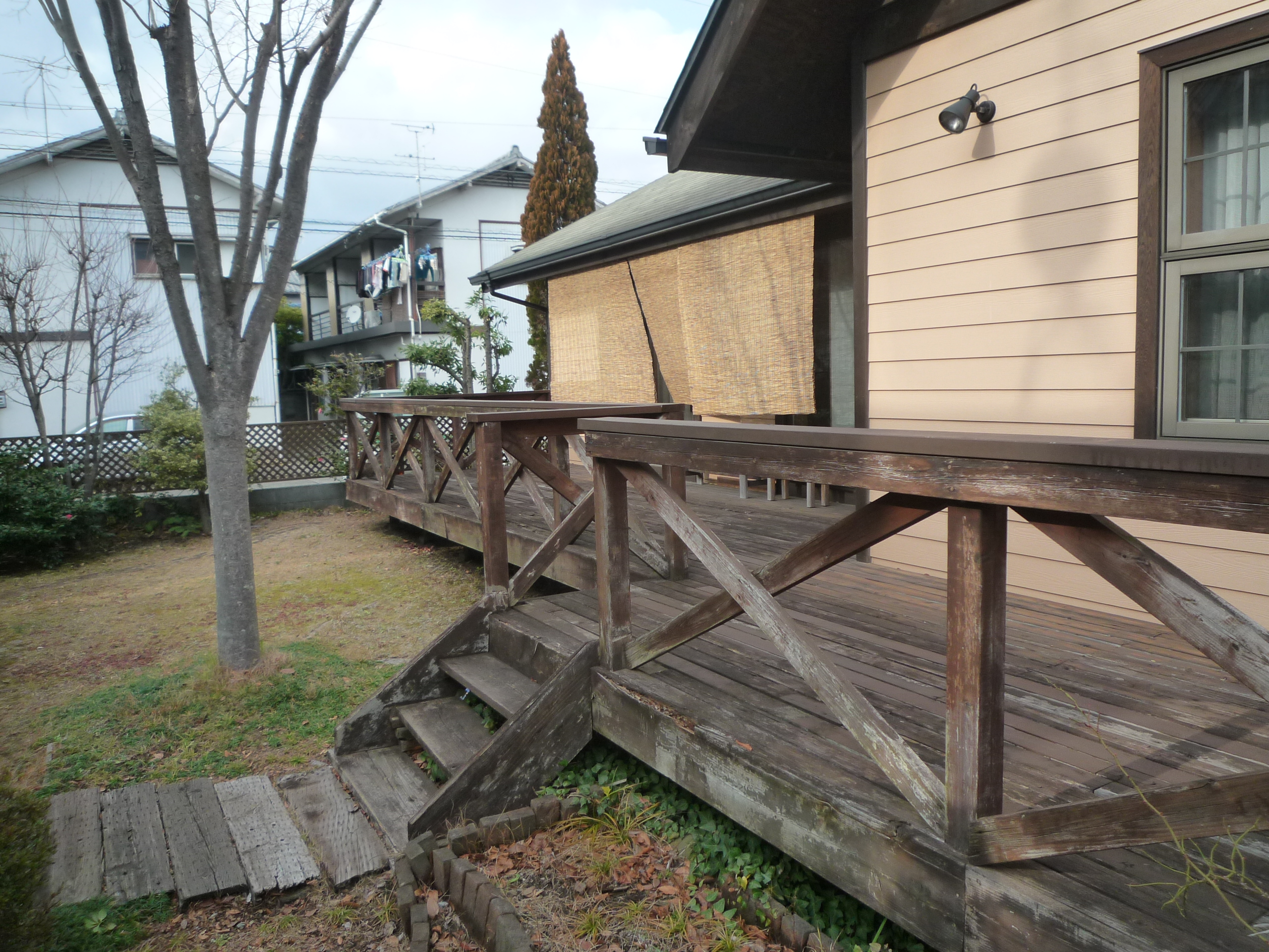築28年でスレート瓦の老朽化で雨漏りが発生。あgるバリウム鋼板に葺き替える工事を行いました。 先ずはスレートの撤去 ...続きを読む2024/03/24 島田市、築33年のお宅のウッドデッキの老朽化、破損の現地調査を行いました