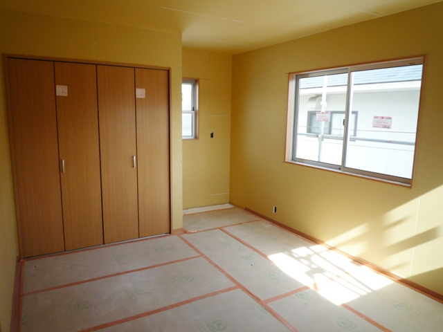 「写真1」2階東南角部屋。これからミニキッチン設置や内装のクロス、照明器具の取り付けです。窓は二方向に付けると、明るいだけでなく 風通しが良くなって心地良い♪ ...続きを読む2024/03/23 伊豆の国市田京 E 様邸現場 いよいよサイディング貼りに取り掛かりました