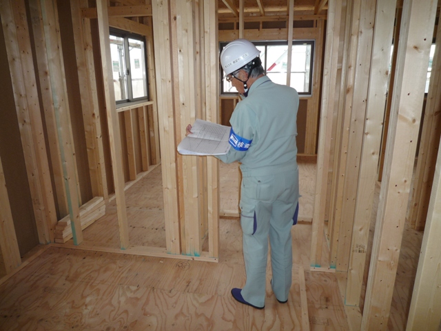 構造のチェックです。耐力壁の位置関係や各補強金具を細かく検査していただいてます。2×4の特徴は耐震性能、高気密に加えて 空間が取りやすい事で設計の自由度が豊富となり 広い部屋を確保しやすいんです♪ ...続きを読む2024/03/23 静岡市駿河区富士見台 U様邸新築現場 外壁サイディングを貼る準備が整いました!