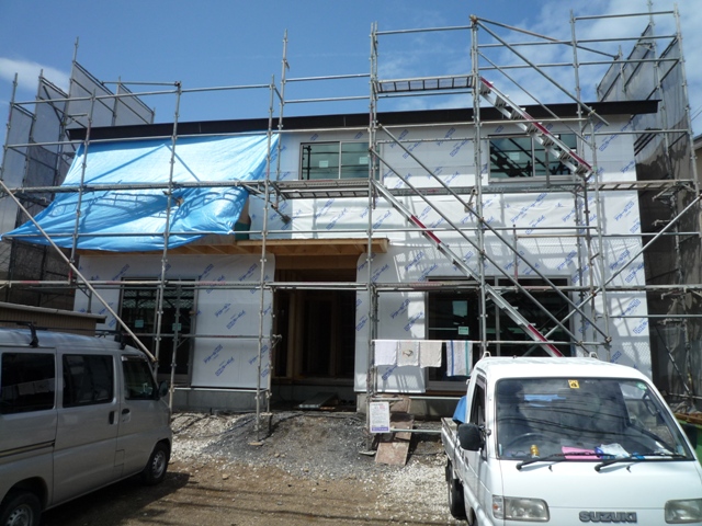 アルミサッシにガラスが入り、外壁周りには防水紙(タイベック)が貼られてきました。これから大工の造作工事が始まりますが、今日は先に検査! ...続きを読む2024/03/23 台風6号接近中!!静岡市葵区吉津で屋根瓦の破損交換