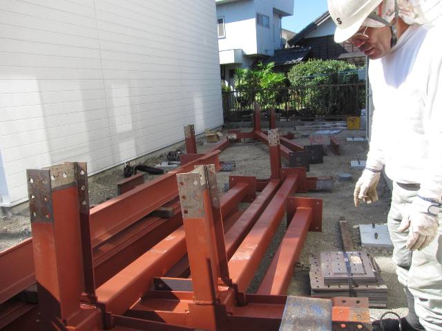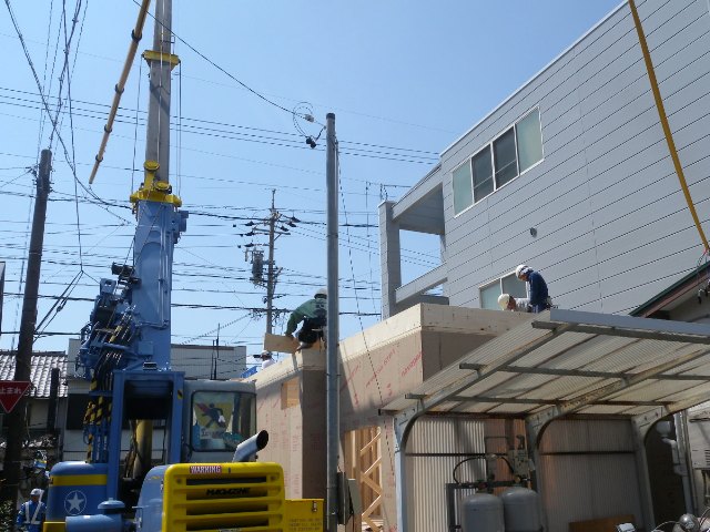 今日は建前♪ 木造住宅の場合は、建前は 棟上げ(上棟)の日に行いますが 鉄骨の現場では、骨組みや外壁が完了してからです。大工さんの工事が始まる時にやります。 ...続きを読む2024/03/23 焼津市本町4丁目 М様邸新築現場 クレーン車の上空は・・ (@o@);/