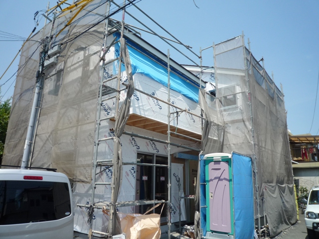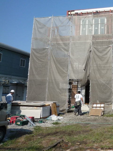 外壁が現場に運び込まれ、いよいよ取り付けです。 タイベック(防水シート)の外側に貼っていきます「写真1」 「写真2」、今回は、天井 ...続きを読む2024/03/23 静岡市駿河区大坪町O様邸新築現場 外壁を貼る前に・・・・防水紙の施工です