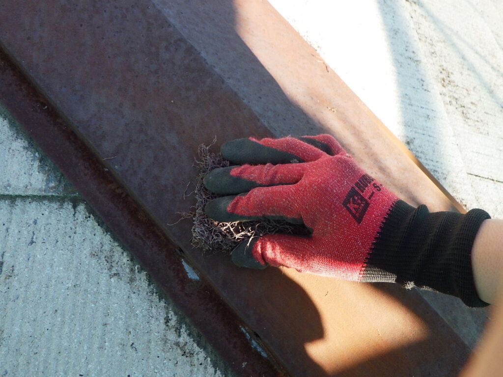 壬生町でベスコロフィラーで屋根下塗りをしました。 ケレン作業をしている所です。壁水切りや棟、軒先はすべて金属製板金なので、ケレン作業をあらかじめ行います。既存の錆は放っておくと、どんどん広がってしまい板金自体をボロボロにしてしまうので、内部に雨水が侵入してしまい雨漏りの原因となります。これ以上 ...続きを読む2024/03/23 藤枝市駅前2丁目のH様邸現場 外壁工事の開始です♪