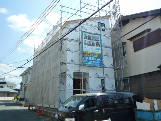 2階バルコニーの防水工事です。 工法はFRP防水。自動車のバンパーやユニットバス浴槽などを作る素材で正式には 繊維強化プラスチック:Fiber Reinforced Plastics白い布を敷いているように見えますが、これがガラス繊維。 ...続きを読む2024/03/23 長泉町下土狩M様邸の工事が進んでいます。いよいよ外壁工事