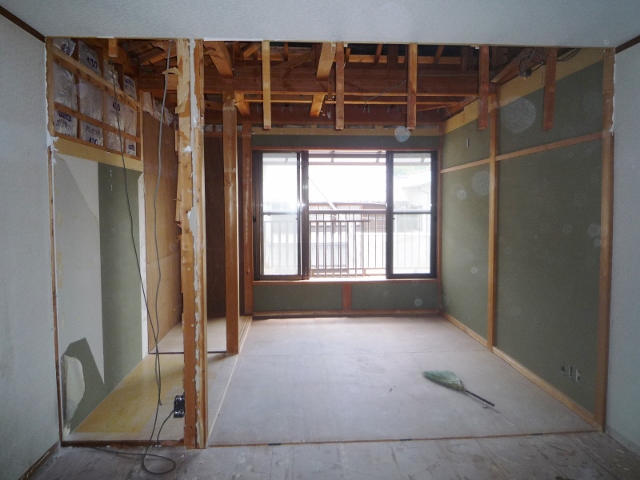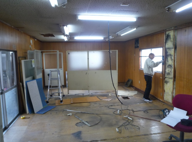 静岡市駿河区中島A様木造平屋建て貸事務所リフォーム工事内装を解体する所です。現状は、3㍉のプリントべニアになります。一枚の幅が606㍉高さが2400㍉、一枚一枚手バラシで、解体していきます。薄いべニアなので上手く取らないと、細かくなてしまうので、慎重に解 ...続きを読む2024/03/23 静岡市清水区高橋 E様邸リフォーム1 春の新生活に向けてリフォーム開始