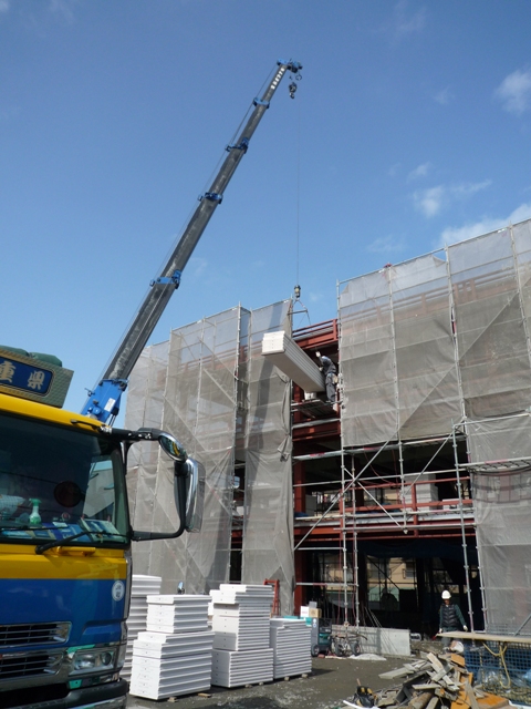 2階のお風呂がポツンと据わっていましたが、今日は内装壁の下地となる軽量鉄骨を組んでおります。実はこの軽量鉄骨(シルバーの間柱)この2ヶ月で価格が30%も上がっているんです(><;);やはり鉄骨系の材料はずーっと上昇傾向の様です。 外 ...続きを読む2024/03/23 八幡のNマンション新築現場 今日はクレーンでALCパネル工事