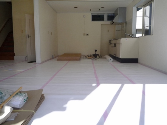 まずは床が汚れたり 傷付かない様養生で覆う作業。照明器具も新たにするので撤去しています。 今までダウンライトが多くてオシャレではあり ...続きを読む2024/03/23 静岡市駿河区中島A様木造平屋建て貸事務所リフォーム工事4
