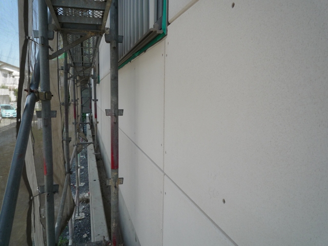 外壁工事、ALCパネル(厚さ5センチ)。『軽量気泡コンクリート』といいまして、軽石状に気泡があるので水に浮く素材です。この外壁はサイディングとは違い、無塗装の材料ですから触るとまだ白い粉っぽさが手に付く状態でザラザラ感があります。ですから貼り終わった後フ ...続きを読む2024/03/23 沼津市岡宮で外壁の継ぎ目の防水工事