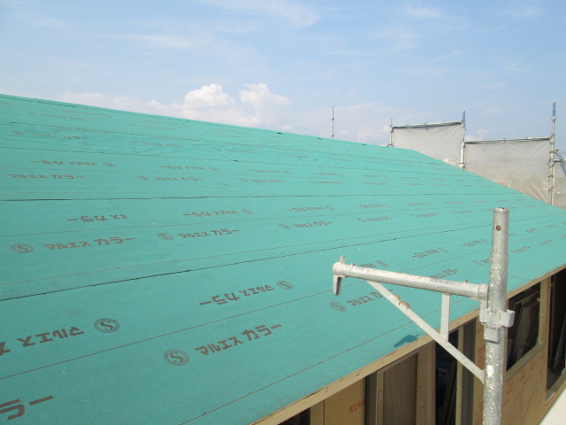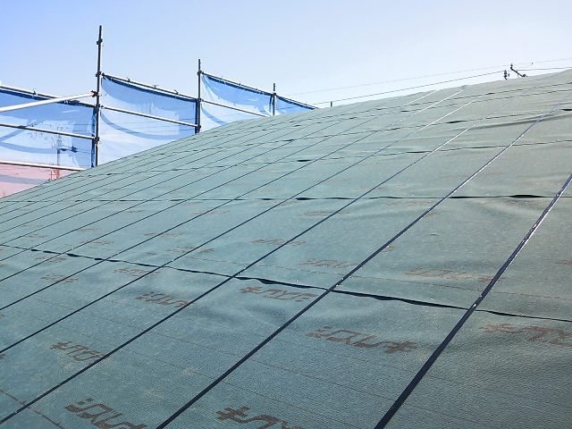 いよいよ外壁工事が始まります。 最初に透湿防水シート貼り! 壁内部に湿気がこもらないように湿気は通すけれど、雨水は通さないという優れモノ♪ この外側にサイディングを施工していきます。 ...続きを読む2024/03/23 静岡市駿河区南八幡で屋根に防水シートの施工中です
