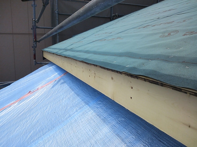 「写真1」防水紙の上から胴縁という木材を取り付けました。色が・・・ネズミ色に変色してる。古いとか雨ざらしだった? そんなんじゃ~ないです!防腐・防蟻処理の塗装が施されている材料です。これは防水層を抑える為と、外壁のガルバリウム鋼板を取り付ける木下地を兼ね ...続きを読む2024/03/23 静岡市清水区蒲原で屋根の防水(緑色のシート)が貼れました