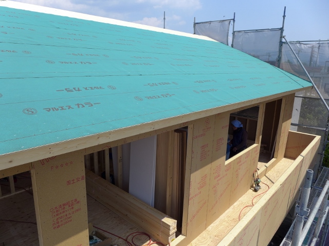 2024/03/23 静岡市葵区沓谷 K様邸新築現場 屋根の防水シート貼り完了