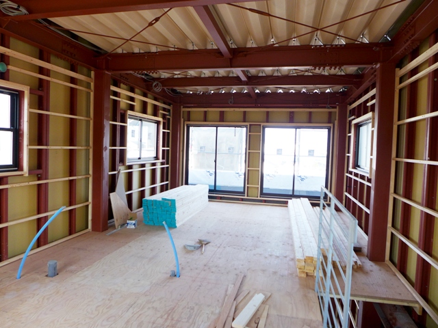 「写真1」バルコニー側の大きな窓♪2.7mの大開口。内部はまだ大工さんが入っていないので鉄骨の骨組が剥き出しです。 「写真2」外周り ...続きを読む2024/03/23 駿東郡清水町伏見で屋根の防水工事始まります