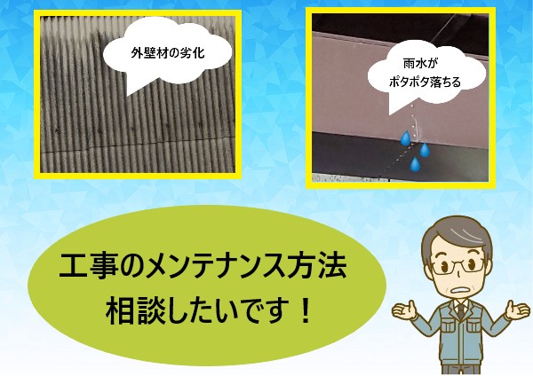 こんにちは、街の屋根やさん堺店です。大阪市大正区で行った工場の改修工事の様子をご紹介します。工場の方より『工場のメンテナンス方法についてご相談したいです!』と当社にご連絡を頂きました。ご相談内容は、外壁材(波型スレート)の劣化や、工場内部に通っている箱樋の接合部分から微量の雨水が落ちてくる事で ...続きを読む