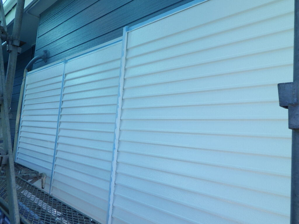 宇都宮市の外壁塗装ですべての工程が終了し完工しました。 雨戸戸袋と土台水切りの上塗り塗装が完了しました。メッシュシートで日陰になっているので見えないですが、横から日に反射させて見ると板金表面に艶が出て綺麗に仕上 ...続きを読む2024/03/22 宇都宮市でアレスダイナミックトップで外壁中塗りをしました。
