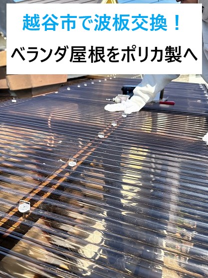 こんにちは、街の屋根やさん堺店です。本日は堺市南区で『玄関庇の照明周辺から蜂が飛んできた』とご相談があった、玄関庇の点検をご紹介します。照明部には隙間があり、蜂が出入りしていたと思われます。庇に取付けられている部材も腐食や劣化が見られ、補修が必要な状態でした。暖かくなってくるこの時期は、越冬・冬眠から目覚め昆 ...続きを読む2024/03/7 越谷市で波板交換!経年劣化の2階ベランダ屋根をポリカーボネート製へ