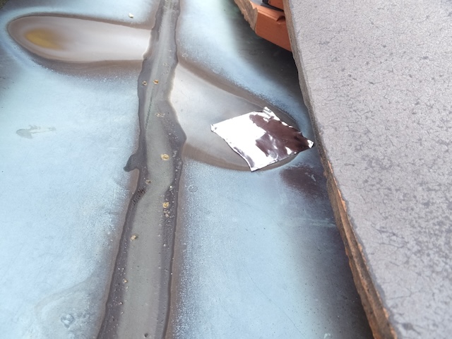 今回は瀬戸市にて内装天井に雨染みを発見し、調査結果として谷板金の穴あきが原因だった事例を紹介していきます。明日以降雨予報でしたので、点検だけではなく応急処置を速やかに施しました。今回の事例のように、谷板金は酸性雨などの影響で気付かぬうちに腐食が進んでいる可能性があるためご注意ください。当記事では設置費用の穴あ ...続きを読む2024/03/7 瀬戸市で谷板金の穴あきによる雨漏り発生・翌日が雨予報のため穴が空いていた部分に応急処置を施しました