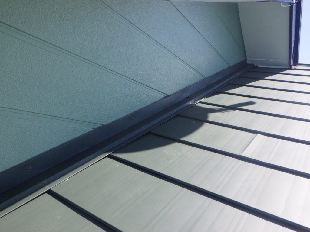 宇都宮市でスレートからガルバリウムにカバー工事が完工しました。 壁水切りを取り付けました。 板金下地に38ミリのスクリュー釘で固定してから、窯業系外壁にビスで固定していきます。 屋根カバー工事の場合、外壁材の内側に壁水切りを入れることが出来ませんので、外壁の上から取り付けます。 ...続きを読む2024/03/1 周南市でビルの屋上の点検、シート防水の重なり部分の剥がれから雨漏り