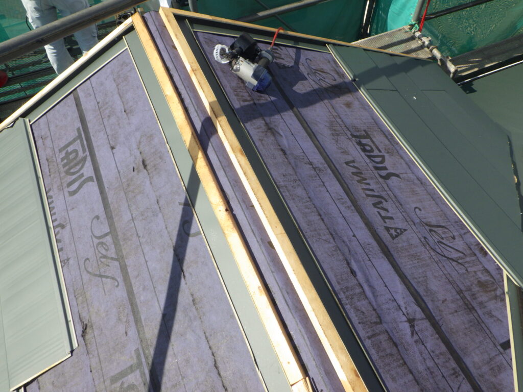 既存のシングル葺き屋根を、耐久性抜群の金属製屋根立平葺きへ張り替え! 仕上げの棟板金取り付けまで、工程を詳しくご紹介します。 1. 立平葺き まず、屋根全体に金属製屋根材を立平葺きで施工します。 立平葺きとは、金属製屋根材を縦方向に並べ、隣り合う屋根材を互いに立ち上げて接合する工 ...続きを読む2024/02/29 枚方市 ナショナル瓦ニューウェーブ屋根雨漏り調査を行いました。