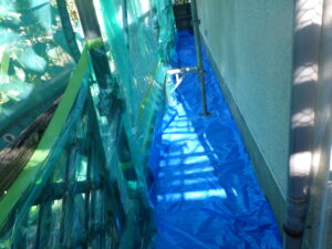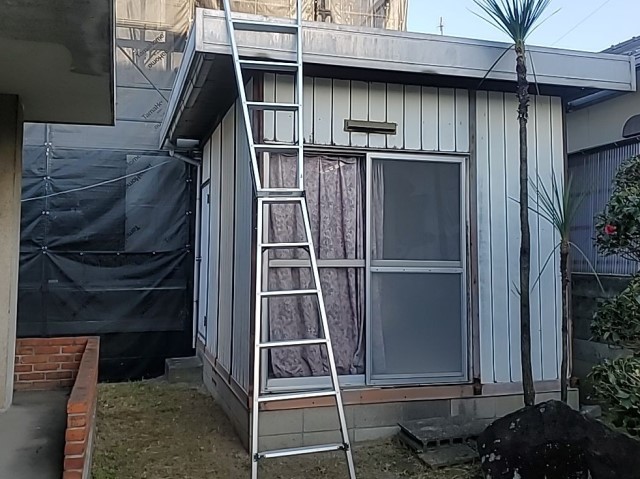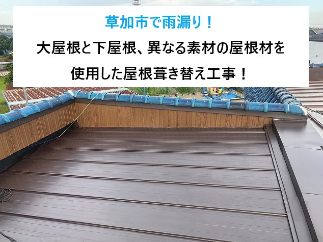 宇都宮市の外壁塗装で養生作業をしました。土間と玄関前の養生をしました。塗料の染み込みを防ぐロールのブルーシート、お客様が歩いても破れにくい、滑りにくい加工の施されたノンスリップマスカーで養生をしました。 ...続きを読む2024/02/29 草加市で雨漏り!大屋根と下屋根、異なる素材の屋根材を使用した屋根葺き替え工事です!