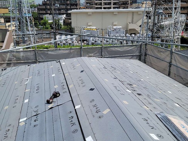 こんにちは!街の屋根やさん神戸店です(*^^*)先日、三田市にお住まいの方から「ベランダの波板が割れて飛散してしまった」とのお問い合わせをいただきました。今回の現場ブログでは、三田市にてベランダの波板修理のため無料点検をおこなった現場をご紹介いたします(*^^*) 関連ページ 「ちょっとし ...続きを読む2024/02/29 名古屋市天白区でスレート屋根のカバー工法、改質アスファルトルーフィングの張り施工