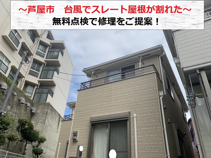皆さんお疲れ様です!街の屋根やさん神戸西店です。今日は、三田市にお住まいの方より「棟瓦の修理見積もりと修理方法」についてご相談を頂き、現地調査へお伺いした様子をご紹介しましょう(^_^)/瓦屋根には屋根と屋根の接合部分から雨の侵入を防ぐための「棟瓦」が設けられています。瓦屋根本体は塗装不要の屋根材ですので雨漏 ...続きを読む2024/02/29 芦屋市 台風でスレート屋根が割れた?無料点検を行い修理をご提案